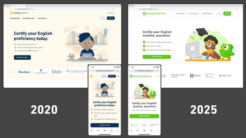 That’s the kind of thinking that drove this change. A short-term mindset might have kept the DET looking separate, more traditionally “serious” —putting Duo the owl in the corner. But we’re building something meant to last. Something that brings Duolingo’s mission to the world of high-stakes testing. Something that transforms testing, for good.