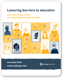 Explore our white paper: "Lowering barriers to education: How technology makes increased global access a reality," informed by the Duolingo English Test team, higher education professionals, UNHCR humanitarian aid workers, and international students. It examines how the current social and geopolitical landscape is impacting higher education access and the way innovative models, technology, and institutional investments could offer solutions.